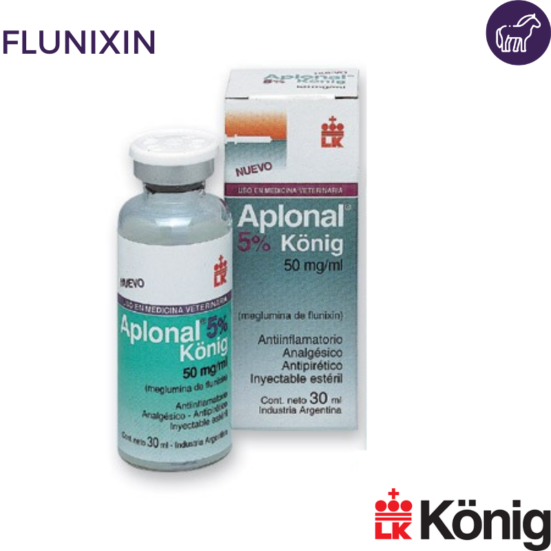En caso de cólico administrar por vía endovenosa 1,1 mg / Kg. de peso vivo de Flunixín (1 mL de Aplonal 5% cada 45 Kg. de peso), pudiendo repetirse la aplicación hasta 3 veces a intervalos de 30 minutos, si el dolor no remite.