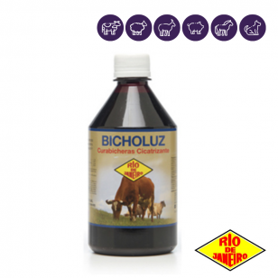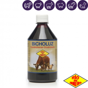 BICHOLUZ RJ es un producto especialmente desarrollado para el tratamiento y prevención integral de las miasis con una sola aplicación. La gran actividad germicida y larvicida se refuerza con la acción cicatrizante de su compuesto ácido tánico. El ácido tánico es hemostático, detiene la hemorragia producida por el acto quirúrgico, precipita las albúminas e impide el medio favorable para que desoven las moscas y se produzca la miasis (Bichera). Mata larvas por contacto directo, destruyéndolas en el acto por condensación protoplasmática. Destruye los gérmenes asociados por su contenido alcohólico y precipita las albúminas de los tejidos lacerados o dañados favoreciendo la rápida cicatrización. Por su baja tensión superficial penetra en las heridas desgarrantes ejerciendo su acción en forma profunda destruyendo las larvas que se encuentra alojadas en “túneles” El contenido de un fosforado en su fórmula da una acción residual que, conjugada con la acción larvicida y cicatrizante, nos pone frente a un curabichera ideal.
