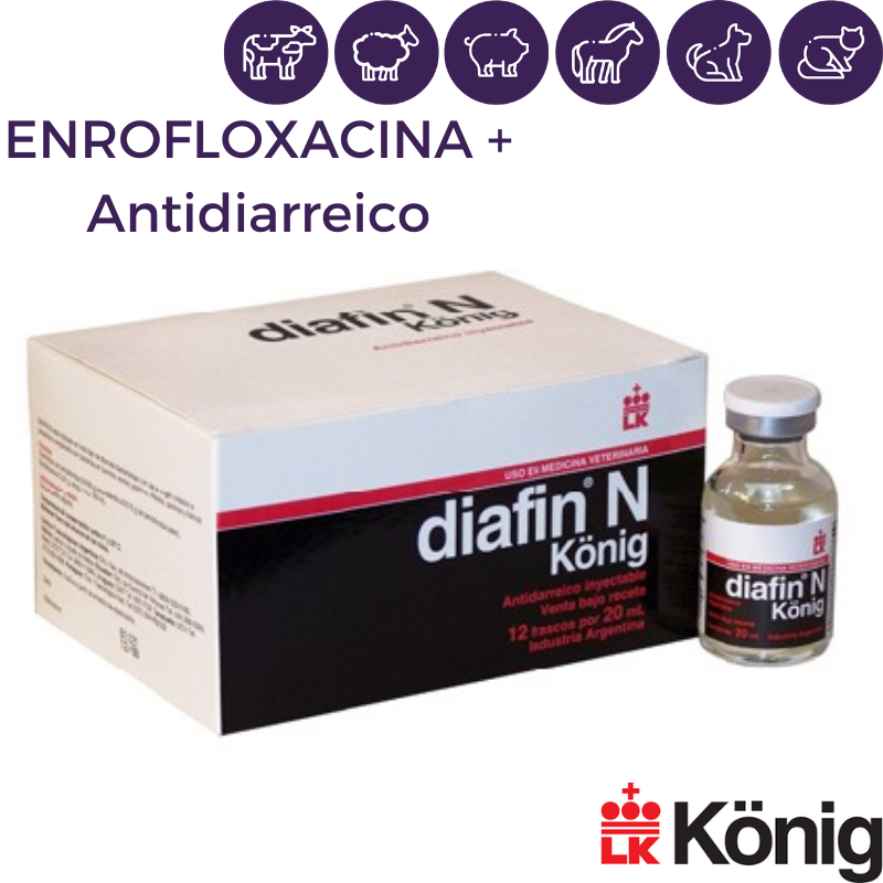 Es la asociación de Bencetimida, un potente anticolinérgico y enrofloxacina, antibacteriano perteneciente al grupo de las quinolonas de tercera generación. Está indicado en todo tipo de diarreas bacterianas o en las de origen virósico o parasitario complicadas con bacterias en caninos, felinos, bovinos, ovinos, porcinos y equinos.