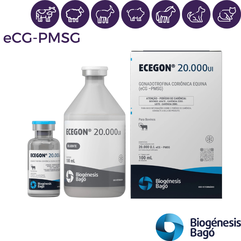 ECEGON®, deberá aplicarse en vacas, ovejas y cabras luego de retirar los dispositivos intravaginales a base de progesterona, favoreciendo el inicio de la fase folicular, las manifestaciones del estro y la ovulación. Dada su acción dual FSH/LH, ECEGON®, actúa estimulando en forma directa el desarrollo folicular y la ovulación en la mayoría de las especies domésticas. Los progestágenos (esponjas vaginales, implantes, dispositivos, etc.) utilizados en muchas especies en forma previa, inhiben la liberación de hormonas luteinizante (LH) y folículo estimulante (FSH) de la hipófisis, frenando la ovulación hasta el momento deseado. Cuando los progestágenos son retirados, la administración de ECEGON® en ese momento, potencia la acción sincronizante de los progestágenos asegurando una perfecta sincronía de celos fértiles.