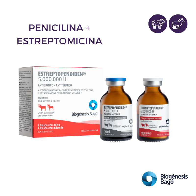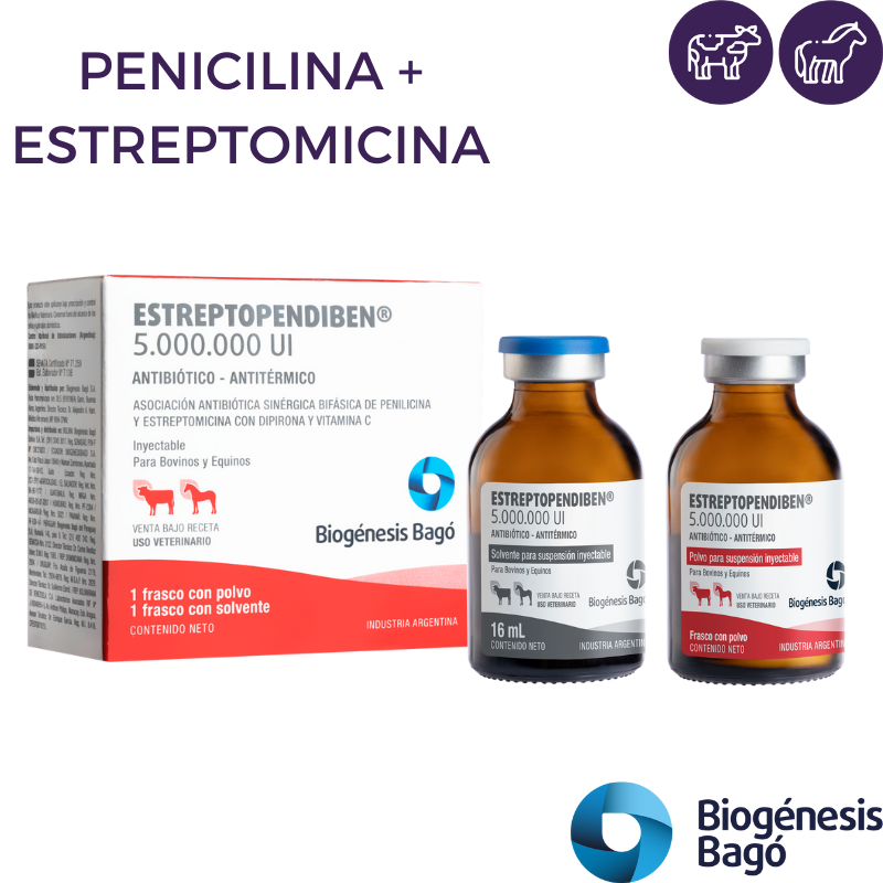 Neumonías, bronconeumonías, neumoenteritis, nefritis, pielonefritis, cistitis, metritis, hepatitis, mastitis, septicemias, adenitis equina, absceso interdigital, actinomicosis, carbunclo, tétanos, leptospirosis. En todos los casos de infecciones provocadas por gérmenes sensibles a la penicilina o estreptomicina.