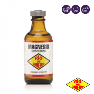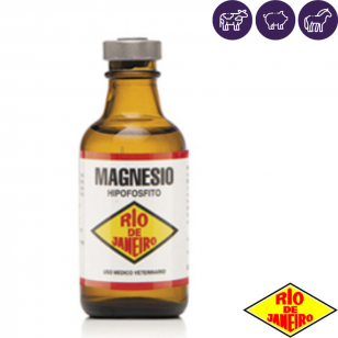 El MAGNESIO HIPOFOSFITO RJ es un preparado óptimo para normalizar el desequilibrio de iones Mg y P, que se manifiesta en los animales en distintas épocas del año. La absorción del magnesio en los rumiantes es relativamente dificultosa y únicamente un 10 - 20 % del que ingresa en la ingesta es absorbido. El magnesio actúa como activador de numerosos fermentos importantes en el metabolismo energético de las células e interviene en la excitabilidad neuromuscular. La disminución de la concentración de magnesio tiene las siguientes consecuencias: Aumento de la liberación de acetilcolina en la placa neuromuscular. Aumento de la sensibilidad de la placa motriz frente a la acetilcolina. Disminución de la actividad de la acetilcolinesterasa. Aumento de la reactividad de las fibras musculares. Es frecuente observar en distintas épocas del año una alteración del contenido de magnesio en los alimentos. Cuando la disminución llega a los límites aceptables se produce una serie de manifestaciones clínicas o subclínicas que acarrean serias consecuencias para los bovinos, especialmente para las vacas lecheras provocando: Disminución de la secreción láctea. Alteración de la actividad respiratoria y circulatoria. Pérdida del apetito. Calambres de distintos grupos musculares. Nerviosismo. Tetanias hipomagnesémicas.