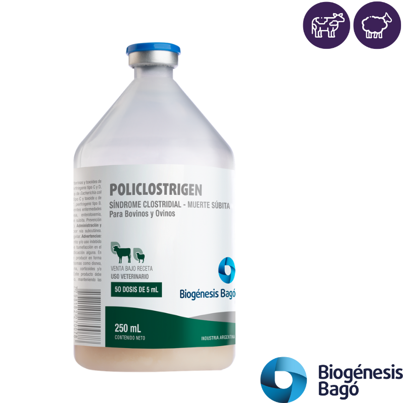 Vacuna para la prevención de las siguientes enfermedades en bovinos y ovinos causadas por Clostridios: mancha, gangrena gaseosa, enterotoxemia, hepatitis necrótica infecciosa, hemoglobinuria bacilar y muerte súbita.