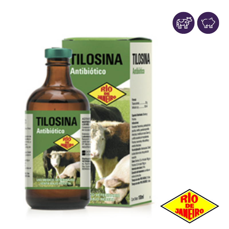 La TILOSINA RJ, es un antibiótico perteneciente al grupo de los macrólidos, que posee importantes cualidades farmacológicas que lo hacen un producto de elección en algunas patologías; y en otras lo convierten en la alternativa a utilizar en caso de fracasar los tratamientos comunes. Posee muy buena absorción por vía intramuscular y logra en muy poco tiempo la CIM, logrando la CM a los 20-30 minutos de inyectado, manteniendo niveles terapéuticos por 20hs. aproximadamente. Su eliminación se hace por bilis y a través de riñón y leche. La tilosina se caracteriza por ser un antibiótico de baja toxicidad y alto margen de seguridad. Su actividad terapéutica se ve favorecida en forma notable, por la acción de las histaminas y de sus efectos, siendo los más destacables. 1- Su acción antiedematosa que favorece la llegada del antibiótico al foco infeccioso. 2- Su acción vasoconstrictora actúa favoreciendo la normalización de la presión arterial, que en todo proceso con liberación de histamina, está deprimida. 3- Su acción de contrarrestar el espasmo bronquial, muy útil en caso de patologías pulmonares.