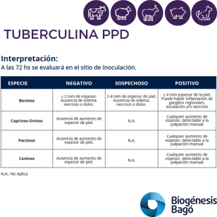 Para el diagnóstico de Tuberculosis en bovinos, porcinos, caprinos, ovinos y caninos.