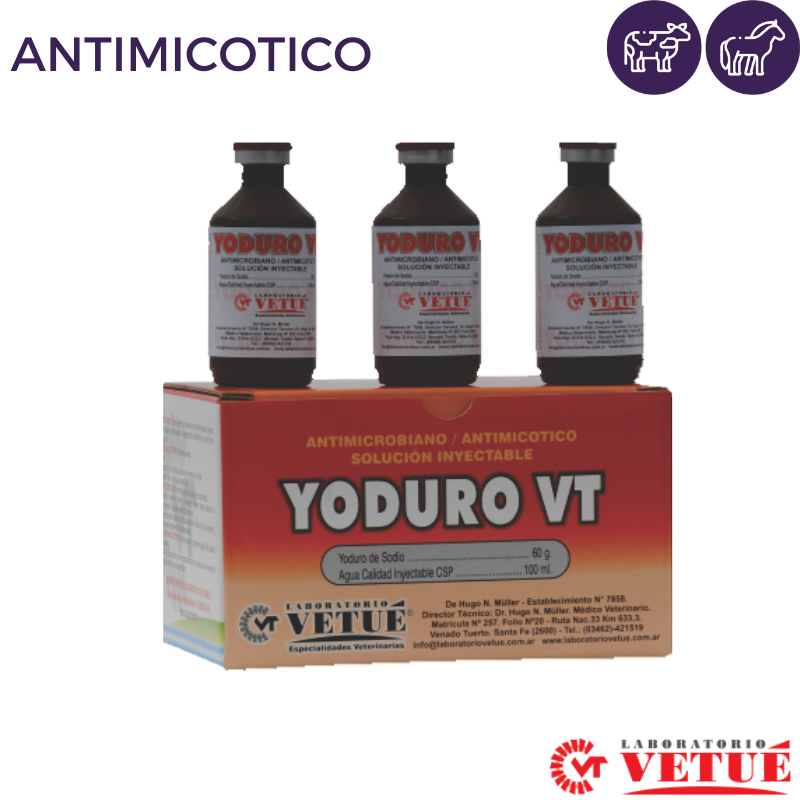 Coadyuvante del tratamiento de enfermedades fúngicas, Actinomicosis, Actinobacilosis y Esporotricosis.Resolutivo y expectorante en equinos.